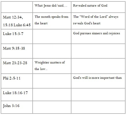 Looking at the life of Jesus (in the table above), what can we infer about the message… Specifically, what does it tell us about the nature of God? What does it reveal about His heart?